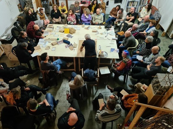 אחד הדברים שאנחנו עושים לא מעט הוא קבוצות למידה: מזמינים אומנים חושבים, וחושבים על אומנות, כדי ללמוד יחד, לבחון נושא מסוים בסוג של למידת עמיתים, כשכל אחד משתף ומלמד את השאר במה שהוא יודע. לפיכך פתחנו קבוצת למידה קטנה, לא פורמלית, שכללה שחקנים, יוצרות, אנשי צוות, חברים מהשׂדה. אם בדרך כלל לקבוצות האלה מוזמנים אנשים שאינם בקהל המיידי שלנו, בטלטלה הזאת היינו צריכים להתכנס עם שבט הדומים לנו, האילמים כמונו, אומנים, תל־אביבים, חילונים, יהודים. ובניגוד ללמידות אחרות שפתחנו בעבר, כאן לא באנו להציע ידע. באנו לחפש יחד מילים, למצוא ניסוחים, לאתר משימות חדשות, משמעויות חדשות, לתוך הדבר הזה, לערוך בירור זהותי מחודש.