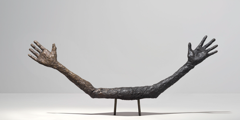 בסדרת העבודות שיצרה האומנית סיגלית לנדאו מאז אוקטובר 2023, היא חוזרת על מחווה שמגלמת את הנאמר כאן בנוגע לתפקיד האומנות. העבודות של לנדאו מבודדות את הרגע של הפנייה אל מעֵבר לחוסר האונים של היחיד באמצעות נשיאת הכפיים או הרכנת הראש. אפשר היה לפרש את המחוות האלה כביטוי של הלכי רוח שליליים (חרדה, חשש, חוסר אונים). אפשר היה לפרש אותן כפנייה אל מקור התקווה (אֵל, עתיד). אך לנדאו מנתקת את המחווה האומנותית מכל אלה: המבט נמשך אל האור או אל האדמה, אך הוא חלול, ואין צורה או אפשרות אחרת שמתהווה מכוחה של המחווה. זו מחווה כמעטפת לחוסר היכולת לצקת תוכן או משמעות באיום הקיומי שהמלחמה מזמנת, ולהיעדר האפשרות לכנות בשם את מה שמעֵבר לסיטואציה הקטסטרופלית המחווה עומדת בפני עצמה, מרוּקנת מתוכן עצמי, והיא מגלמת את הפער שלא ניתן לגישור בין היעדר המשמעות לבין היסוד המוחלט כתחליף חסר שֵם להתרוקנות הזו ממובן. האומנות של סיגלית לנדאו היא אומנות שאינה מחכה למובן שיגיע בעתיד או ממקום אחר, אלא כזו שלוכדת את הממשות של הרגע שבו אין מפלט מן האיום אלא בממשות של הרגע עצמו, שמזמנת את הפנייה מעֵבר לו. העיכוב ביחס למציאות הוא בעצם המחווה המציעה עצמה כמעין מקלט, כזה שנמצא מעֵבר לקיום הפרטי ומעֵבר לאיום שלפתחו, כלפי מעלה או מטה, בממשות של הרגע שהיא בה בעת מחוץ לזמן ולמקום הקונקרטיים. כפי שאומר דרידה: הנשגב הוא מחווה כלפי מה שהוא מחוץ למידה, נעדר התאמה עם מה שנותן לו קיום.